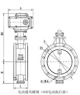 6、電動(dòng)煙道蝶閥廠家外形及連接尺寸: